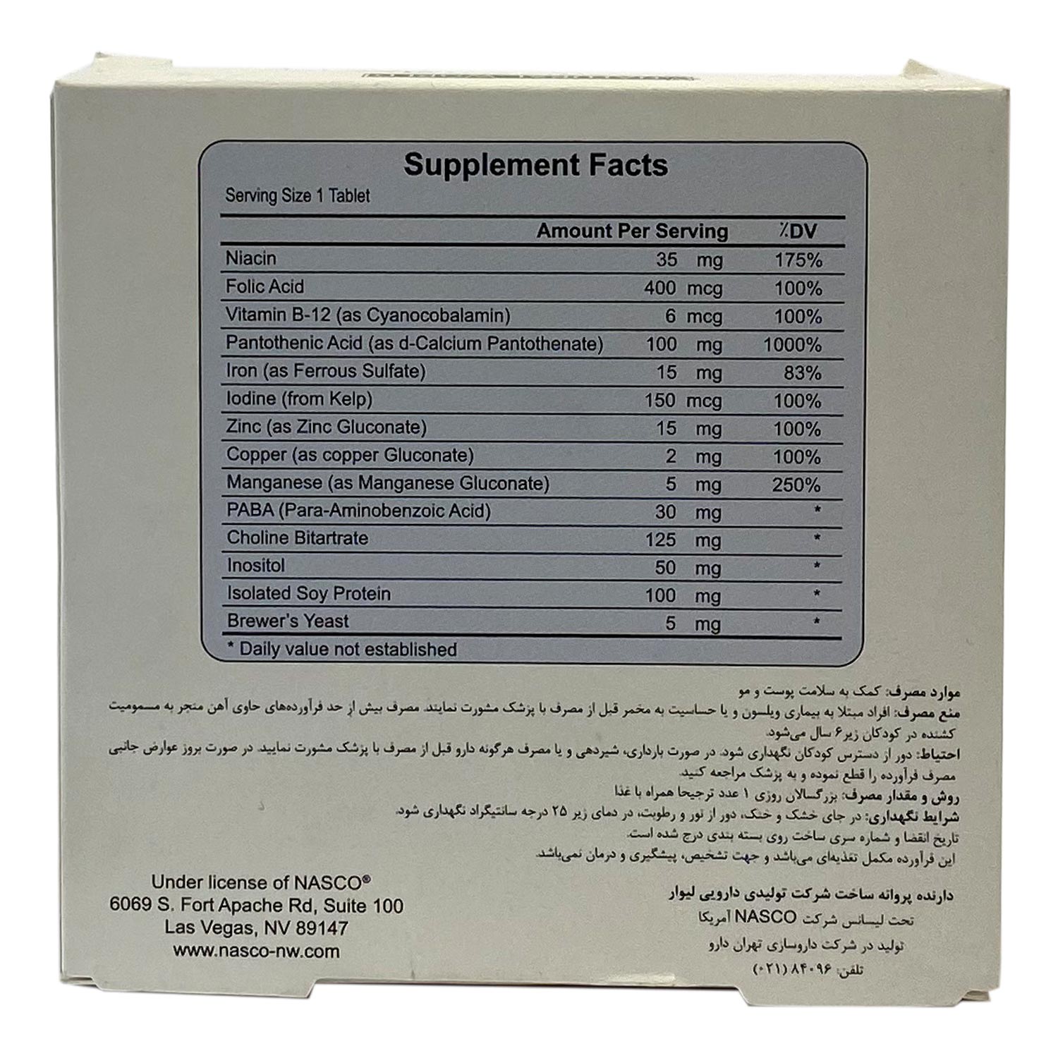 این قرص حاوی مقدار قابل‌توجهی نیاسین، فولیک‌اسید، ویتامین  B12 و روی می‌باشد که بیشترین تأثیر را بر سلامت پوست و مو می‌گذارد. از دیگر اثرات این قرص بالارفتن متابولیسم، افزایش قدرت عضلانی، بالارفتن قدرت سیستم ایمنی و دستگاه عصبی و کاهش احتمال ابتلا به سرطان است.