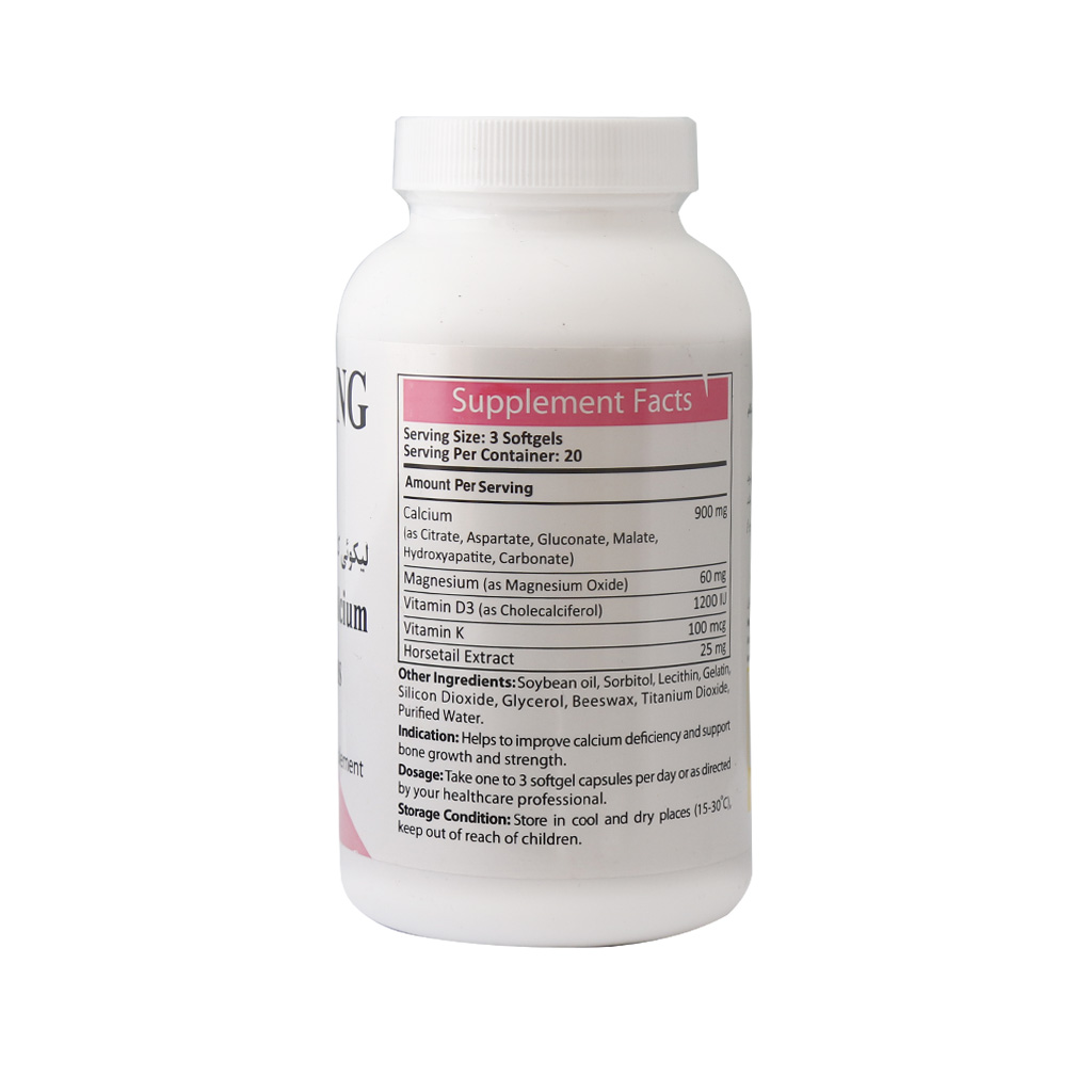 این مکمل حاوی کلسیم، منیزیم، ویتامین دی، ویتامین کا و گیاه دم اسبی است که در ادامه به شرح هر یک از آنها میپردازیم: