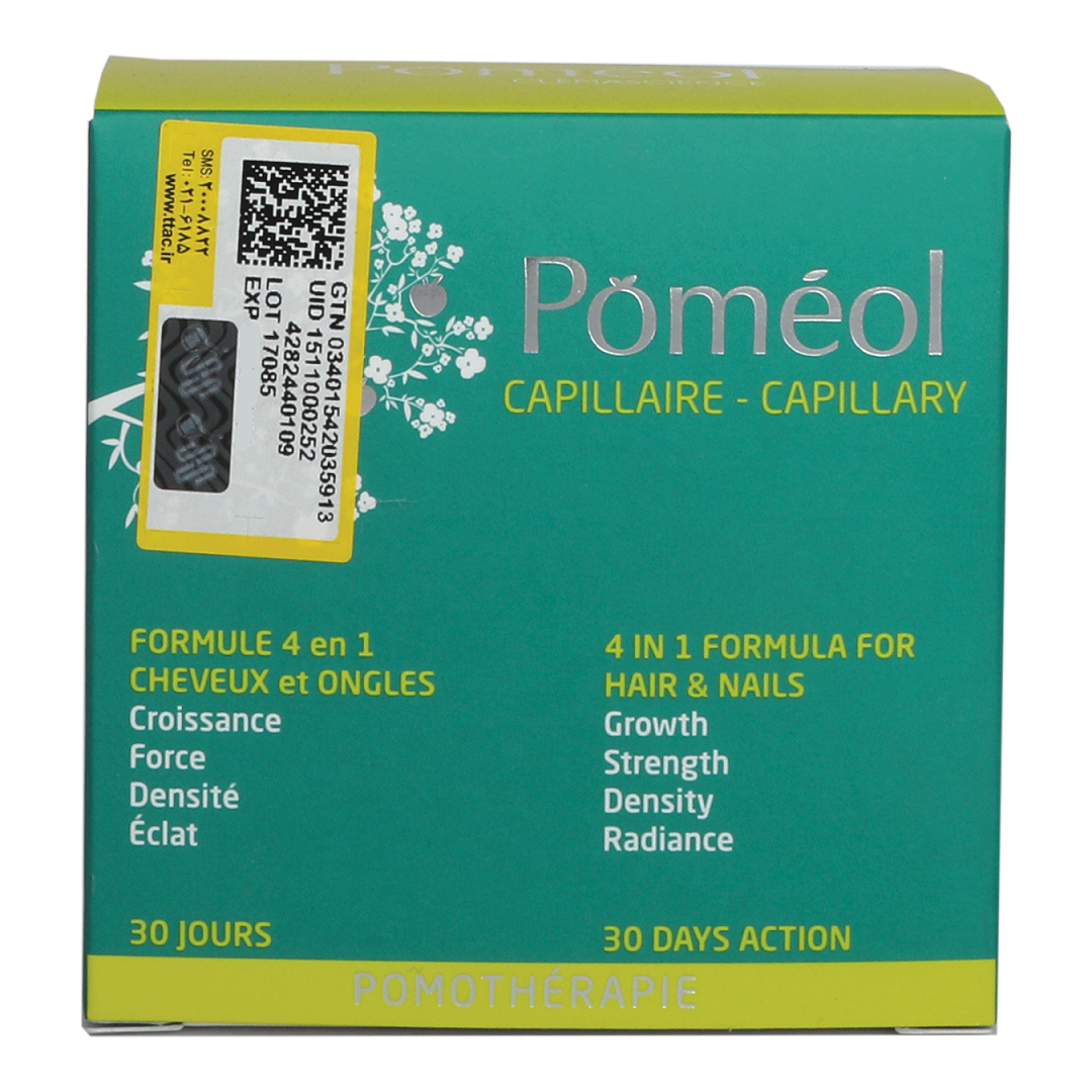 پومئول کاپیلاری کلماساین با داشتن ویتامین‌ها، مواد معدنی، اسید آمینه‌ها و کراتین در ترکیب خود رشد موها و ناخن‌ها را تقویت می‌کند، از ریزش مو جلوگیری می‌نماید و رشد، قدرت، استحکام و درخشندگی مو و ناخن را تامین می‌کند. این محصول ترکیب منحصر به فردی از پودر سیب، عصاره سیب و ژلاتین سیب می‌باشد که حاوی پلی فنول بوده و خاصیت آنتی اکسیدانی دارد. پلی فنول‌ها علاوه بر کنترل ریزش مو، موجب رشد موهای جدید و رفع شوره و خشکی سر می‌گردند. تنوع مواد موثره پومئول کاپیلاری کلماساینس موجب شده که به طور همزمان اثرات گسترده‌ای بر زیبایی مو و ناخن داشته باشد.