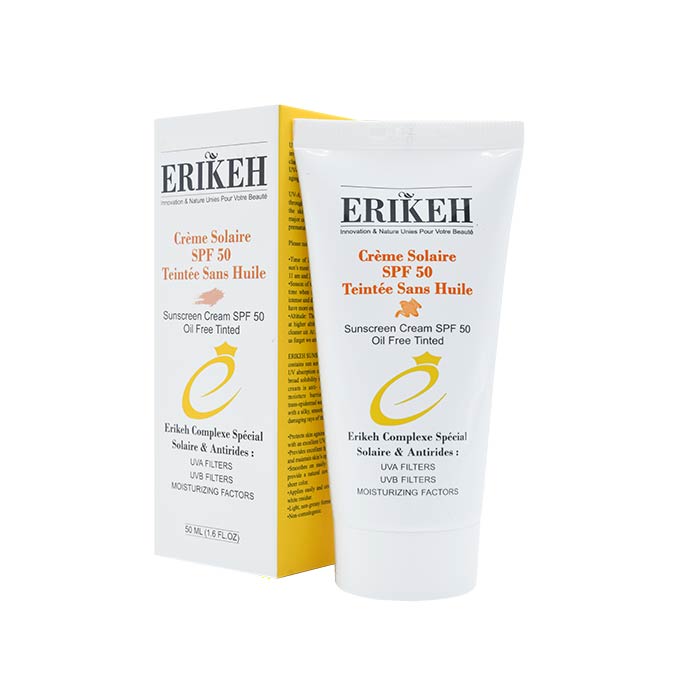 کرم ضد آفتاب رنگی SPF۵۰ اریکه مانند سایر کرمهای ضد آفتاب این برند حاوی فیلترهای قوی و موثر است. در نتیجه حداکثر محافظت را بدون ایجاد حساسیت برای مصرف کننده فراهم میکند. این محصول دارای ساختاری سبک بوده و در عین حال به دلیل داشتن مواد مرطوب کننده و ضد چروک، پوست را لطیف و نرم میکند. برخی از محصولات مراقبت پوستی رایج، مشکلاتی را برای پوستهای چرب و آکنهدار به وجود میآورند، اما این محصول به دلیل فاقد چربی بودن این مشکل را برطرف کرده است. هنگامی که در معرض نور خورشید (حتی از پشت شیشه یا در هوای ابری) هستید، حتما از کرم ضد آفتاب اریکه استفاده کنید و هر دو ساعت یکبار آن را تجدید کنید. به یاد داشته باشید استفاده از ضد آفتاب مهمترین عامل تضمین کننده شادابی، سلامتی و جوانی پوست است. استفاده از لباس آستین بلند، عینک آفتابی، کلاه لبه دار و کرمهای ضد آفتاب سبب جلوگیری از اثرات مضر نور خورشید میشود.