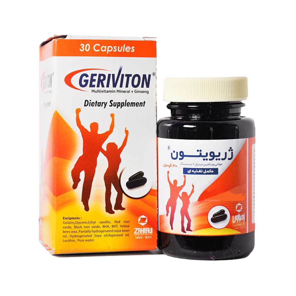 کپسول ژریویتون زهراوی برای حفظ سلامتی عمومی افراد میانسال و جوانتر مناسب است و علائم ناشی از سالخوردگی نظیر کاهش کارایی جسمانی و فکری، خستگی و افسردگی، اختلال حافظه و فراموشی، عدم تمرکز، بی خوابی، لرزش، خارش ناشی از پیری، سوء هاضمه و ضعف بنیه ناشی از پیری را برطرف مینماید. تغذیه نامناسب بر اثر عواملی متعدد از جمله افرایش سن، استرس و سوءتغذیه باعث کمبود ویتامین و مواد معدنی در بدن شده و عملکرد بدن را با مشکل مواجهه مینماید. هر کپسول رژیتون حاوی انوع ویتامینها، مواد معدنی و عناصر کمیاب به میزان لازم جهت رفع نیاز بدن از این ترکیبات است. ژریویتون در افراد میانسال و جوانتر که به دلیل فعالیتهای بیش از اندازه فکری و بدنی دچار استرس هستند، نیز مورد استفاده قرار میگیرد.
